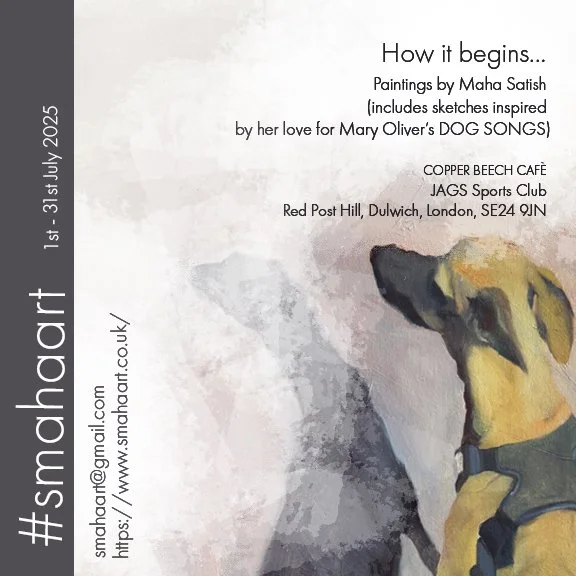 Exhibition of my Signature Dog paintings and some from my recent series ‘Things around us’ Queen’s Wood Cafe, Muswell Hill. June 25 - July 26, 2024 - Extended to 31st August 2024
